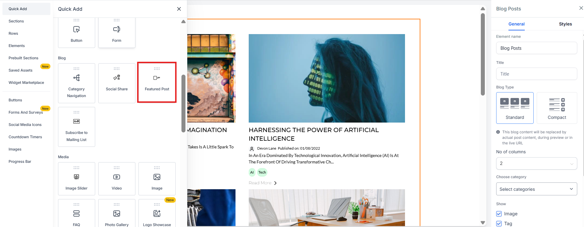 Section titled “How to Add a Featured Post to Your Blog”1. Navigate to the Blog Section: