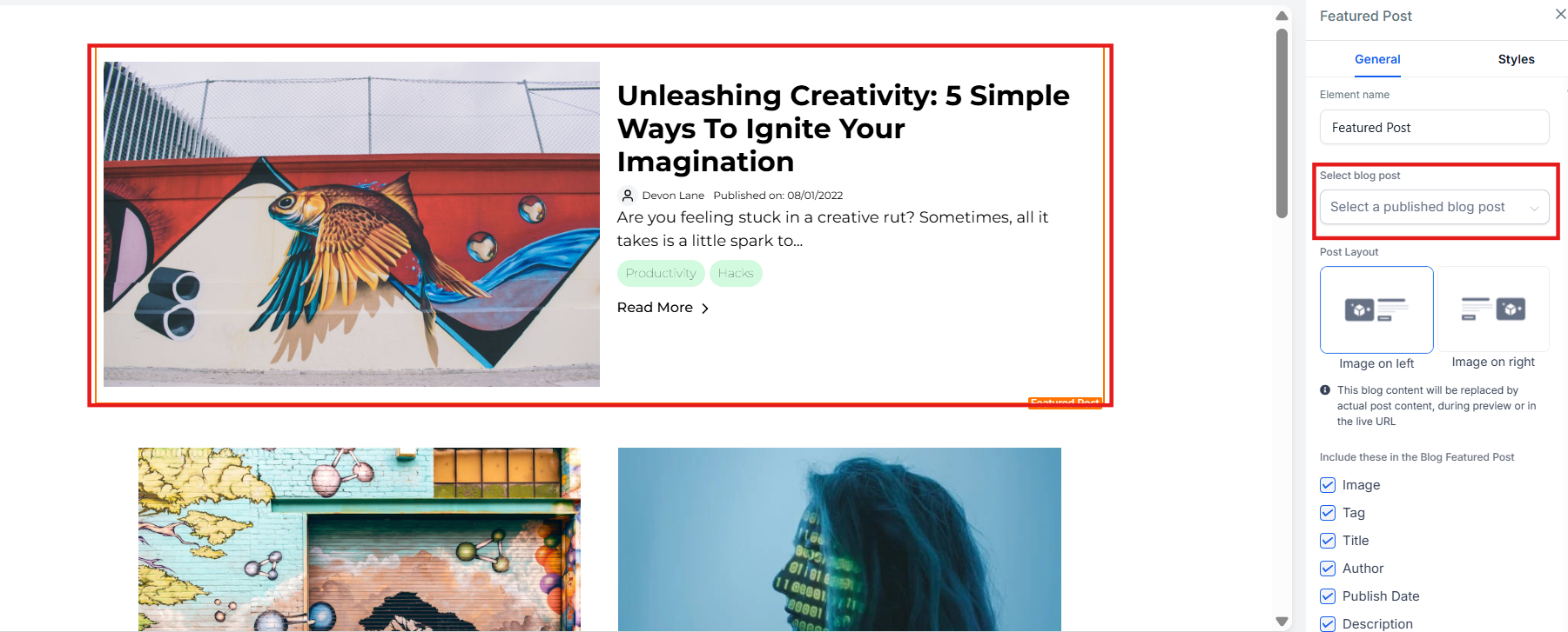 - Once your featured post is set up, publish the blog site to make the changes live.
