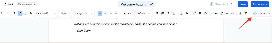 Content AI will allow you to select the content of the example it gave you. Once ready, click on Continue.