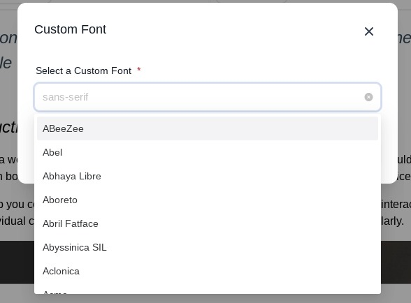 - A pop-up menu will appear that allows you to select a custom font where you can also choose previously selected fonts.