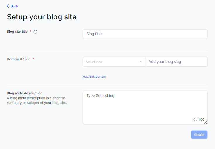 Note: You can also create a blog site without connecting a domain.
