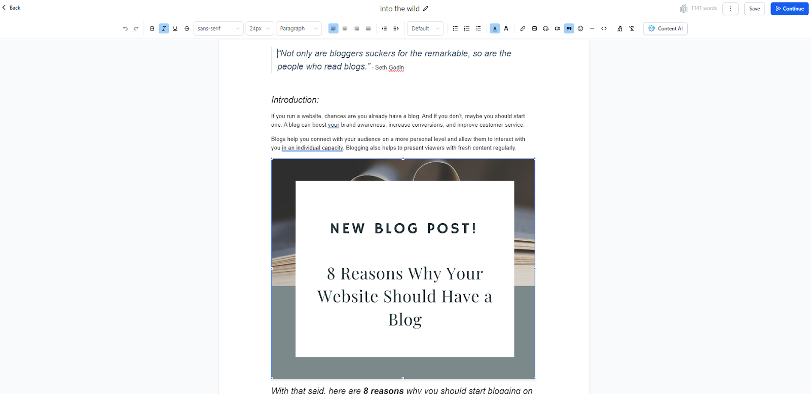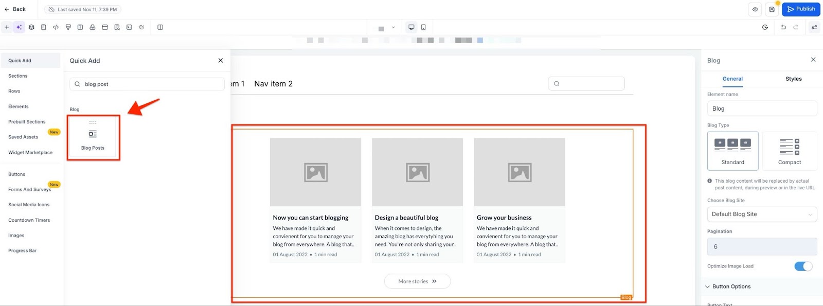 You will be directed to the blog post builder, where you can design your very own blog: