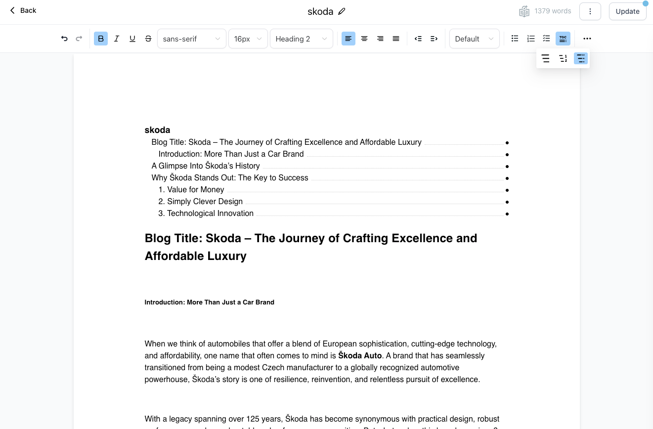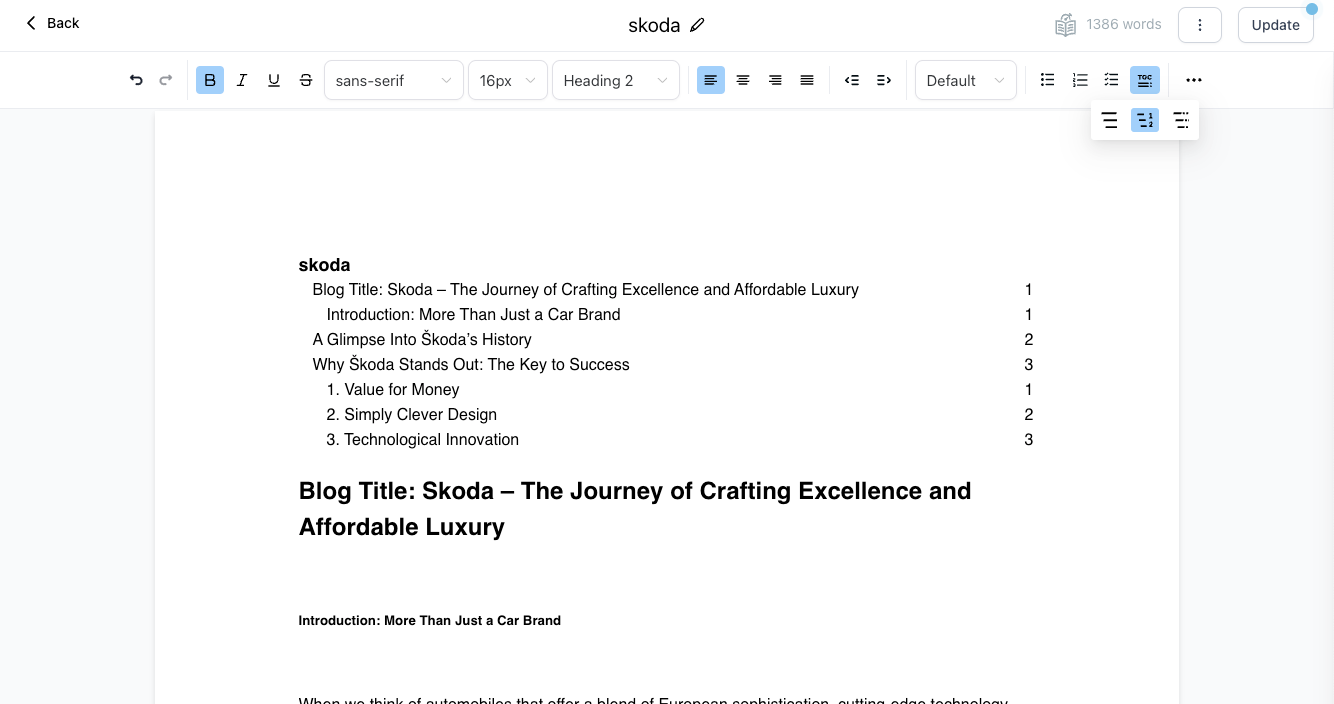 Create an auto-generated Table of Contents based on your headings.