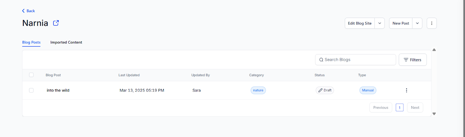 Once saved, it will appear on the main blog tab