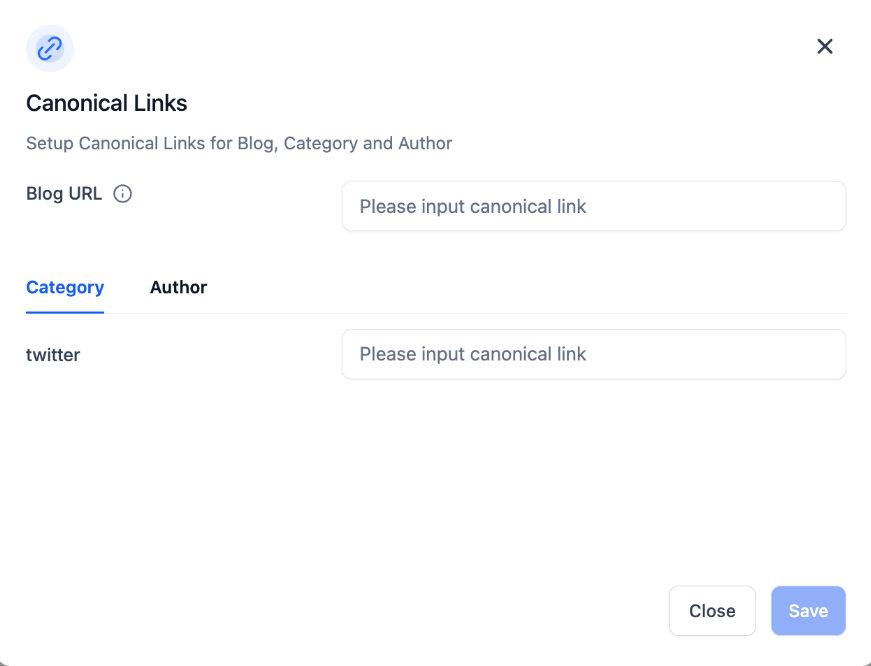 - Here, you can set canonical links for your blog, categories, and authors.