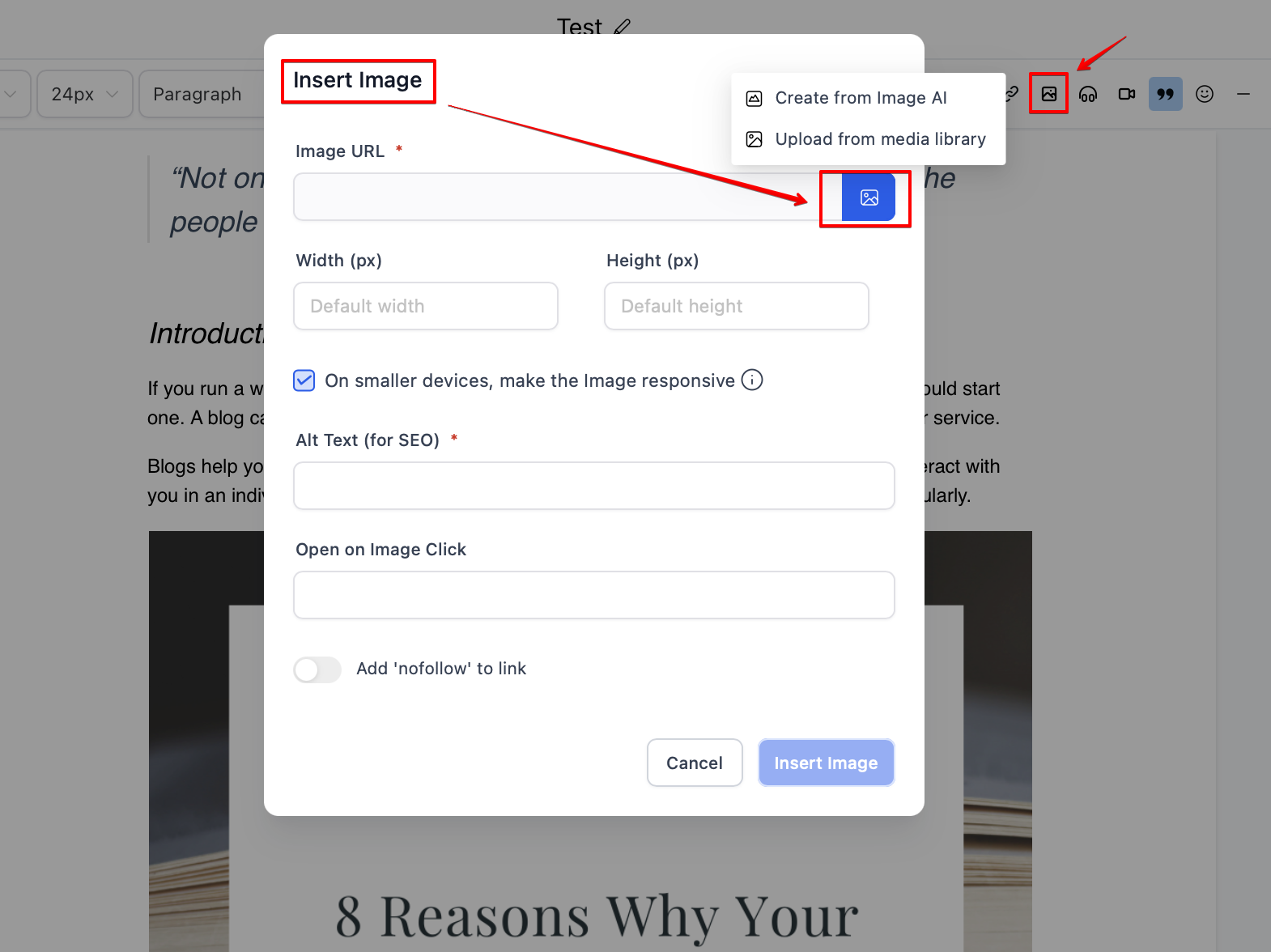 - Create a New Blog Post with a Title, Description, and Blog Post image.