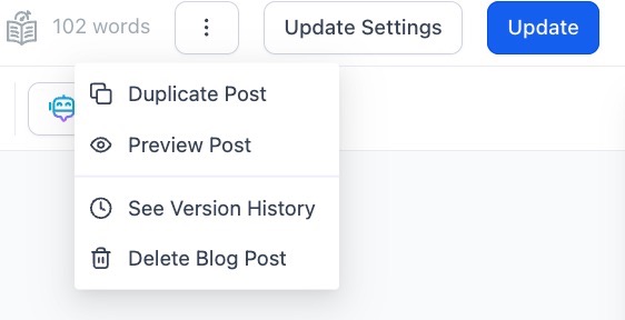 Section titled “Step 1: ”- Create a Blog Post with Settings and SEO details