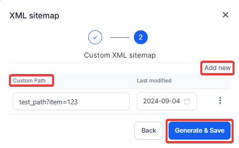 Question: Can I customize the paths in my XML Sitemap? Answer: Yes, you can customize the paths in your XML Sitemap. After selecting the blogs and categories, you can add, edit, or delete custom paths for the ending URL directory in the XML menu. This allows you to refine how your content is indexed by search engines.