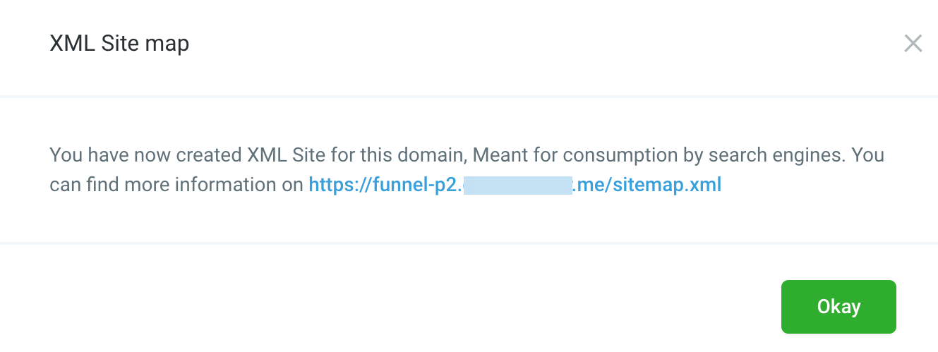 Section titled “After generating the sitemap, follow these steps:”- A confirmation window will appear, stating that you have created an XML Sitemap for search engine consumption.