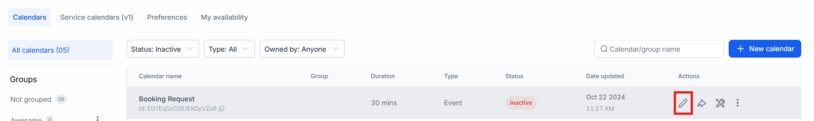 - Click Create Calendar to set up a new calendar or select an existing calendar to edit.