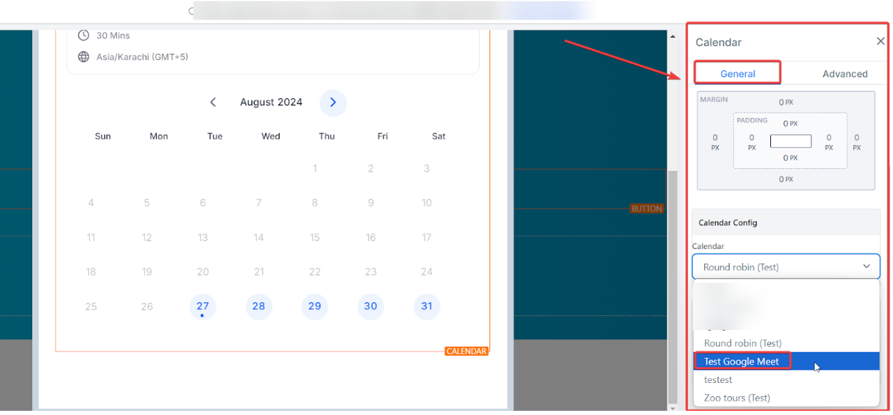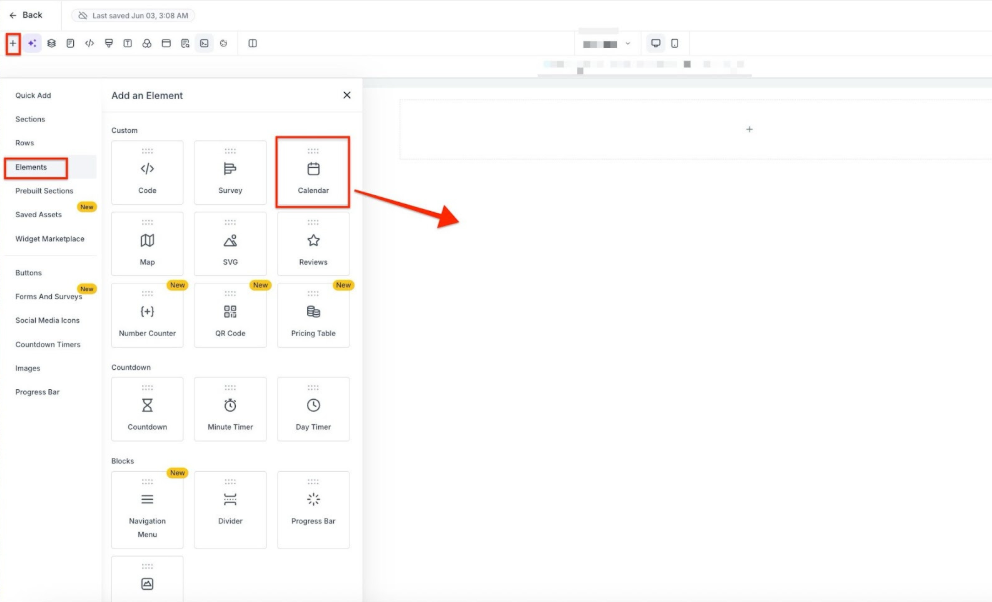 1- Add a Calendar Element: If needed, add a calendar element to your scheduling page using a drag-and-drop interface.