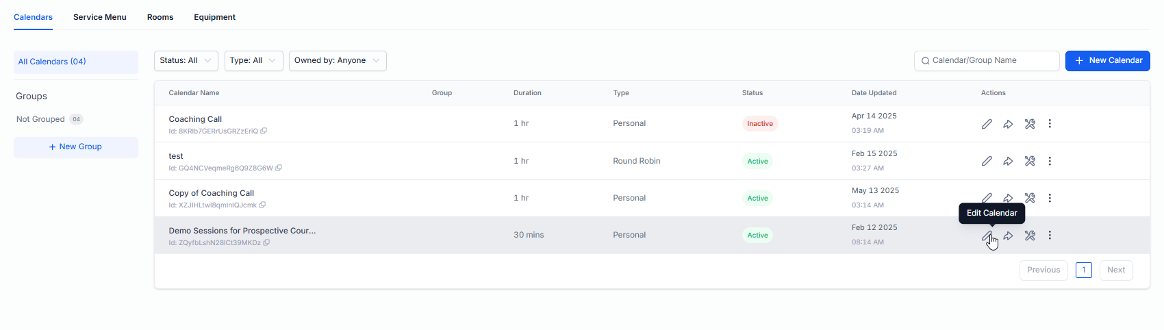 - Click on the pencil icon to open the edit window, and scroll down to find Calendar Configuration.