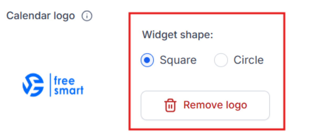 Question: What should I do if my logo doesn’t look right on the Calendar widget? Answer: If your logo doesn’t look right, check that it meets the required specifications (180x180px, max 2.5 MB) and is in the correct file format (SVG, JPG, or GIF). You can also try adjusting the shape between square and circle options or resizing the logo for better alignment.