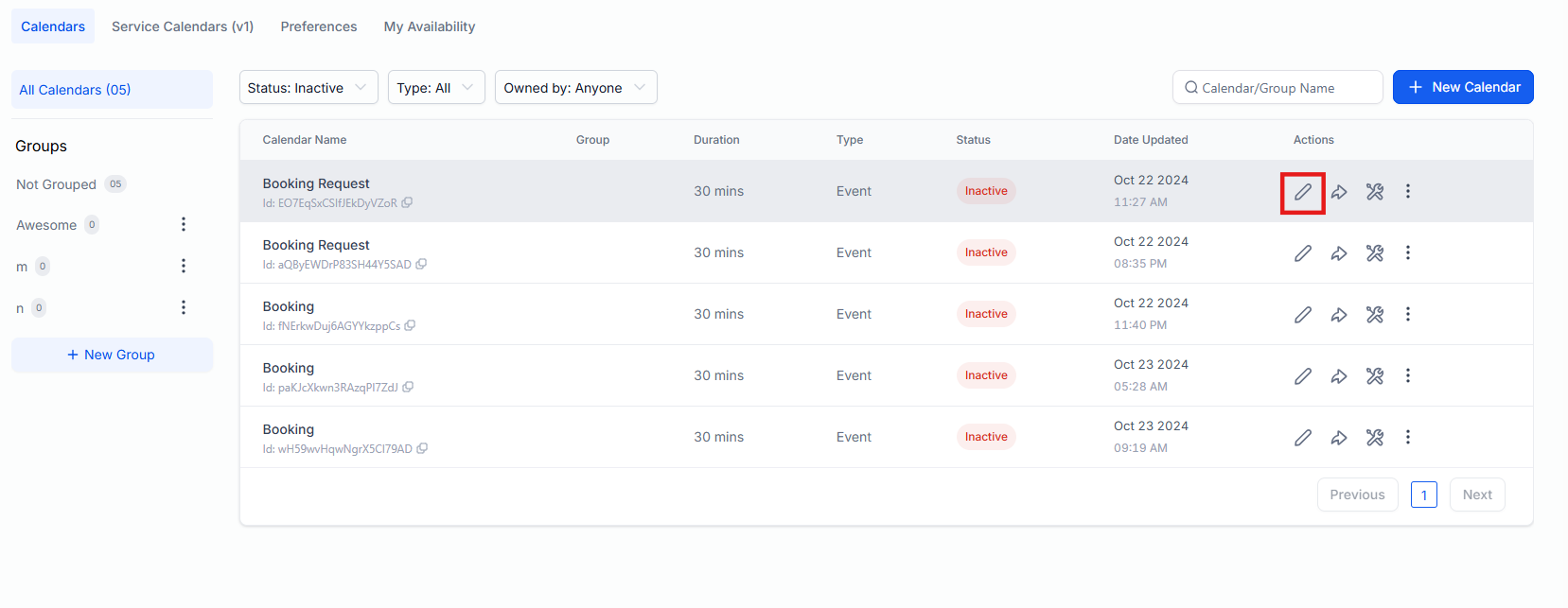 - Click the Pencil Icon in front of the calendar you want to edit.