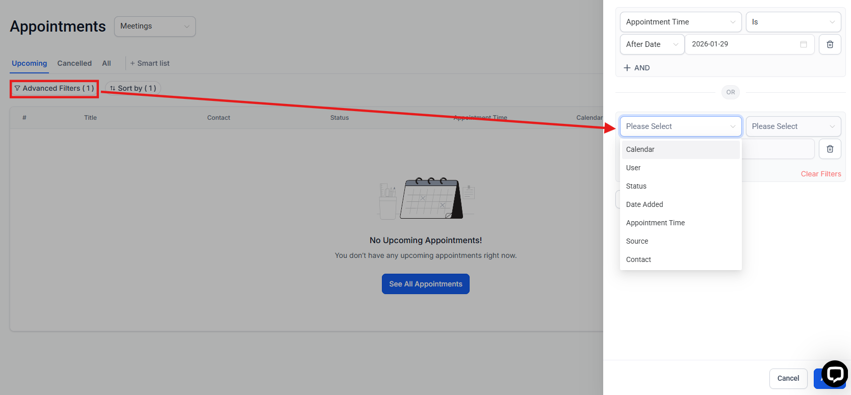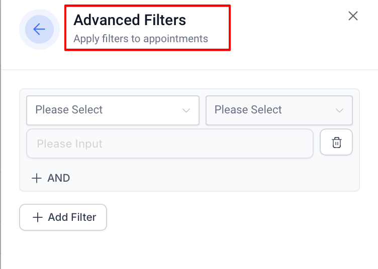 Section titled “2. Using Advanced Filters”The Advanced Filters feature allows you to refine appointments based on specific criteria: