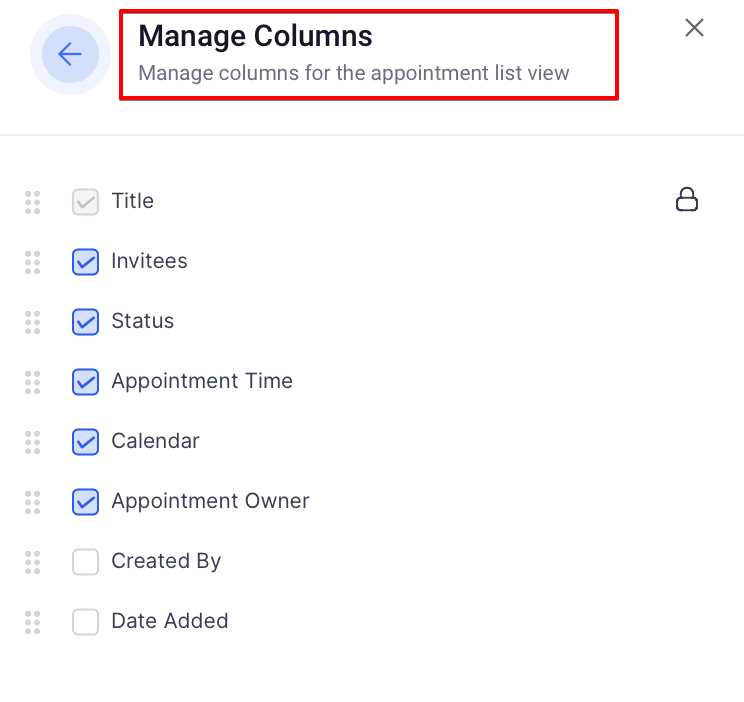 Question: How do I customize the columns in the appointment list? Answer: Go to the Appointment List View, select Manage Columns, and choose which columns you’d like to display. You can also rearrange them for convenience.