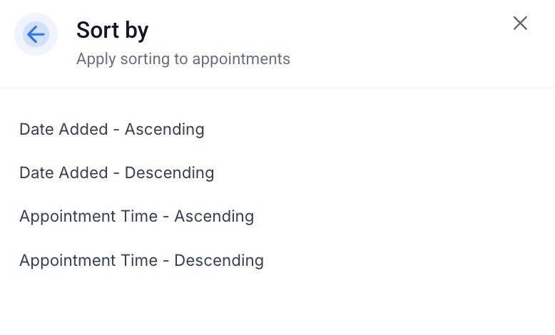- Date Added: Filter by the date an appointment was created for recent bookings.