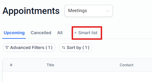 Section titled “3. Creating and Managing Smart Lists”Smart Lists enable you to save your filter and sorting preferences, creating a custom view for specific appointment types.