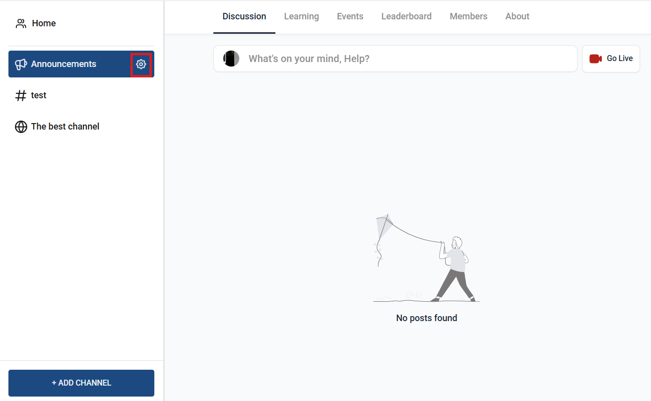Section titled “Creating an Announcement Channel”1. Go to Channel Management Settings.