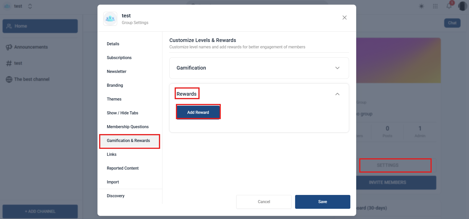 - Go to Rewards Tab: Navigate to the gamification and rewards tab in your group settings.