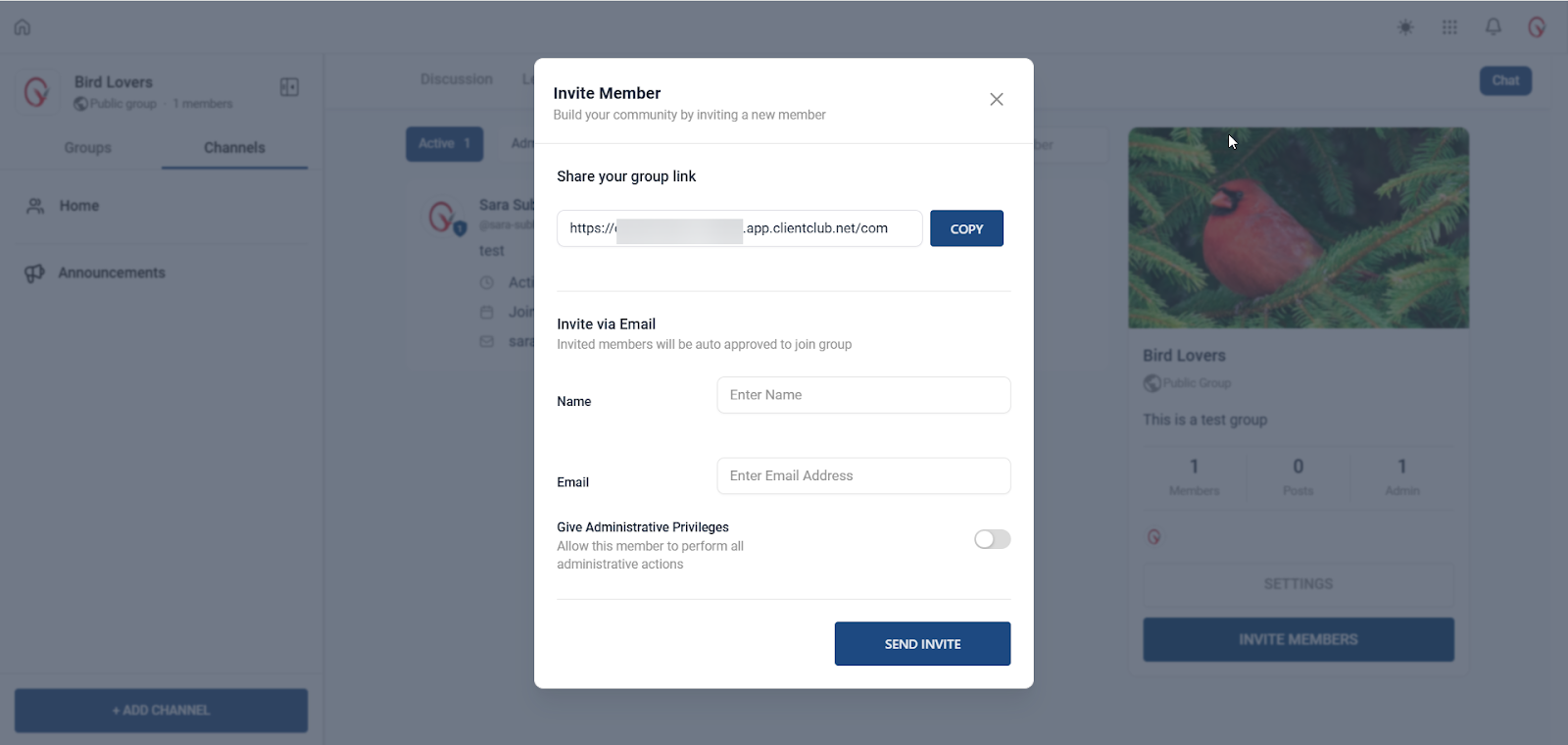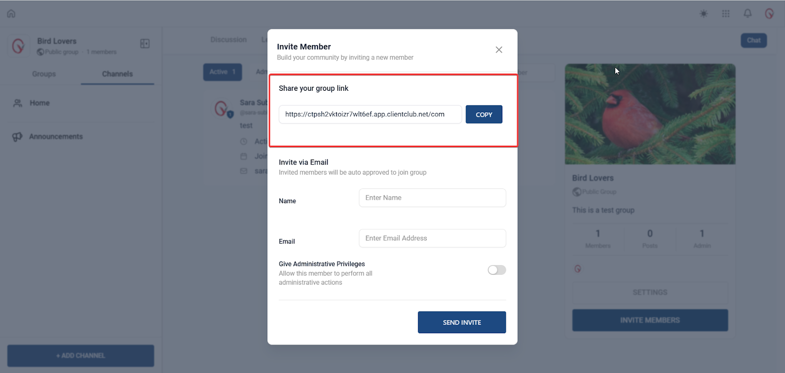 Building a community is essential for collaboration, sharing knowledge, and creating a sense of belonging among members. Our platform offers an efficient way to grow your community by inviting members via email and link. This guide walks you through the process of inviting individuals to your community using the email and link invitation feature.
