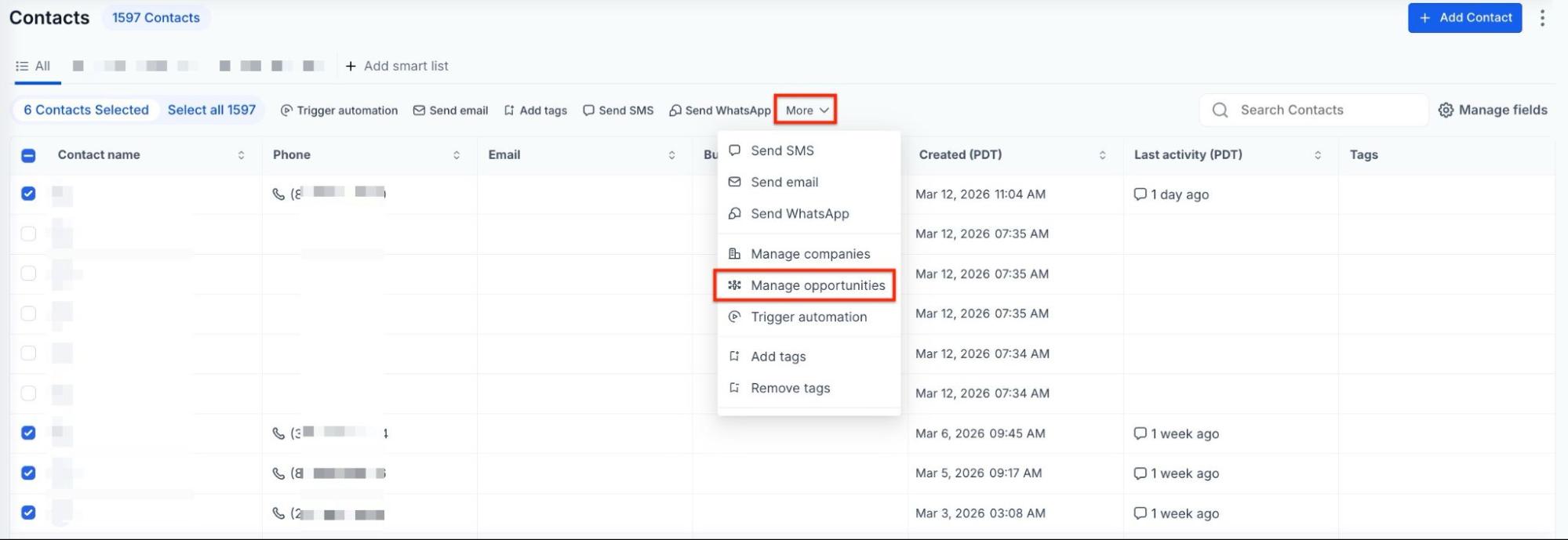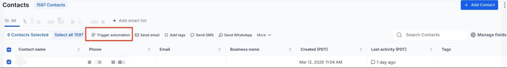 Section titled “Part 2: How To Use The Actions”Step 1: Navigate to Contacts > Contacts/Smart Lists.