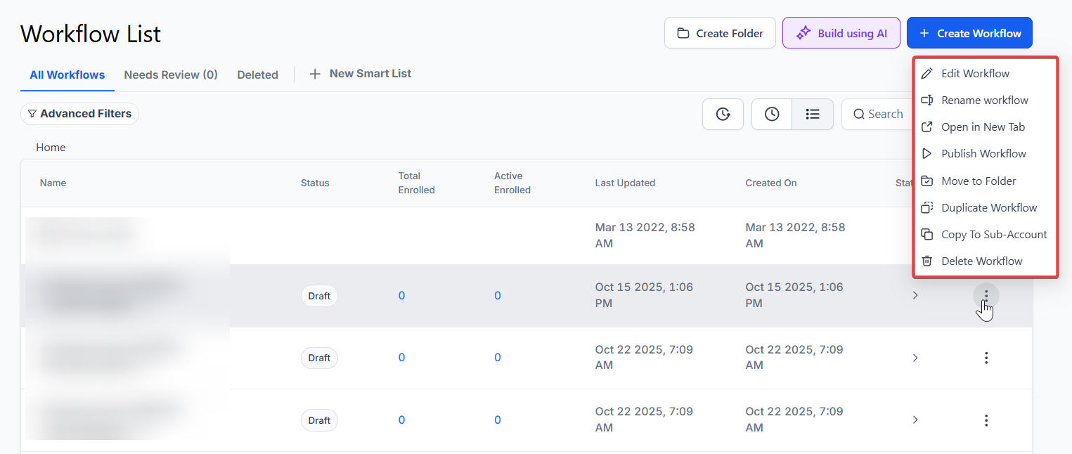 - Go to the “Automation” section and create a new workflow or edit an existing one.