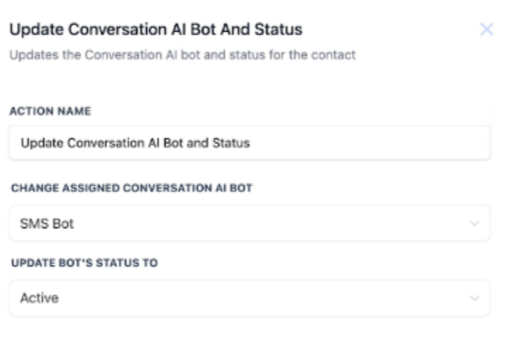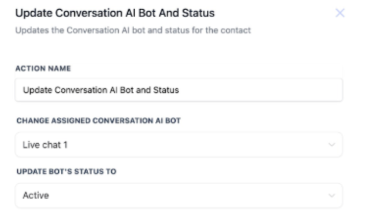 Overview of the Feature The “Update Conversation AI Bot and Status” action empowers you to: