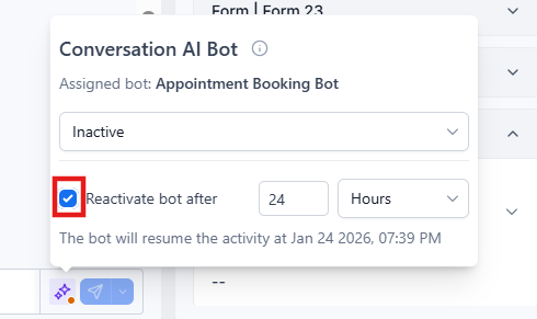 - You can set a specific time duration for the bot to reactivate automatically, ensuring that it will only remain inactive for the desired period.