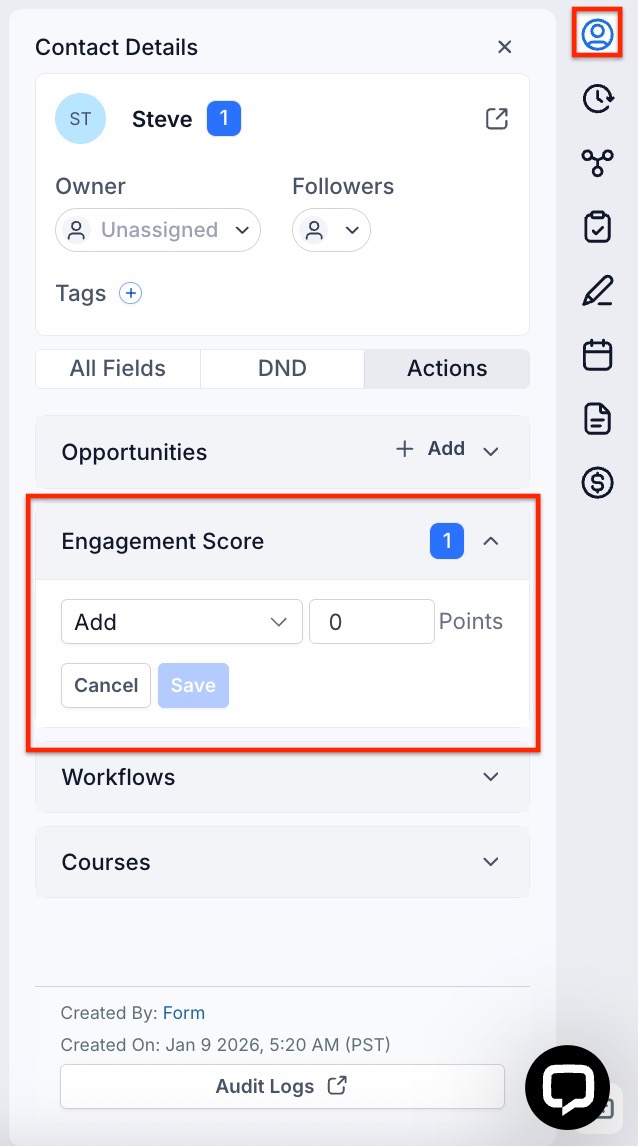 Section titled “Measuring Contact Interaction”- Purpose: This feature helps you measure how much a contact interacts with your business, providing insight into their level of interest.