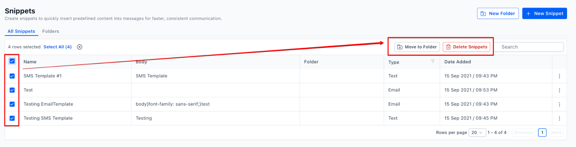 Once you create your snippets, you can organize them into folders. Select the snippets and click on Move to Folder.