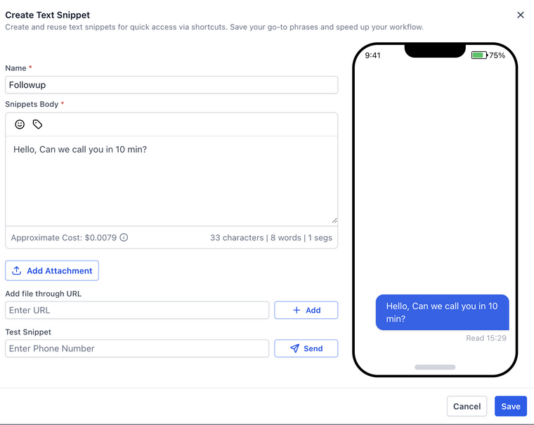 Section titled “4. Unified Snippet Builder ”- Consistent Formatting: Both the Snippets Composer and Conversations Composer now use the same editor, making sure that your messages look the same across all communications.