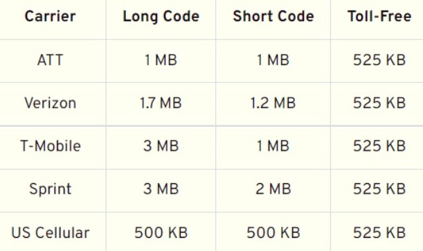 - Carriers also have limits. Here are the Carrier Attachment Size limits for some common US Carriers: