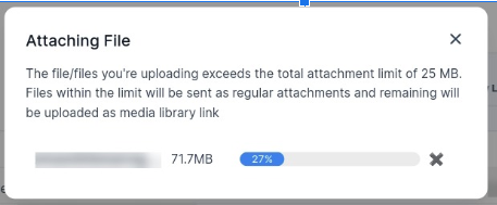 - Users can upload large-sized attachments directly from their devices, or if you prefer from the media library