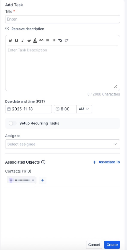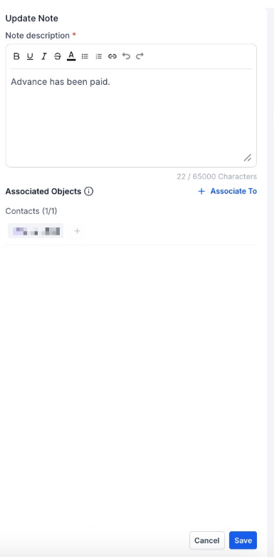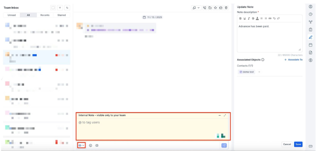 - Streamlined Workflow: Manage tasks and notes directly within the Conversations module without navigating to other sections.