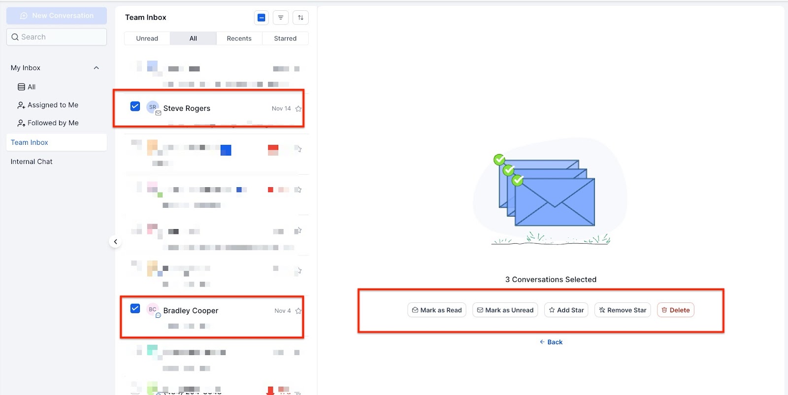 Bulk actions (limited to 100 conversations at a time)