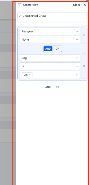 Apply the necessary filters and assign a name to your view. Once created, the view appears in the Inbox panel and displays all conversations that match the selected filters.