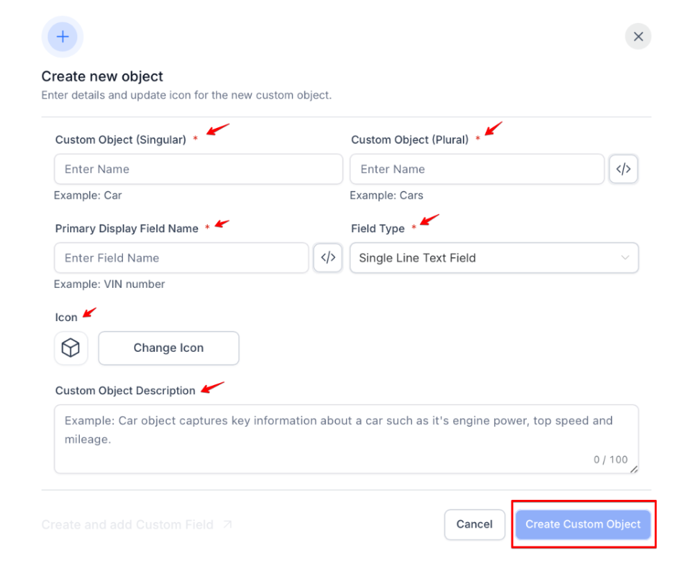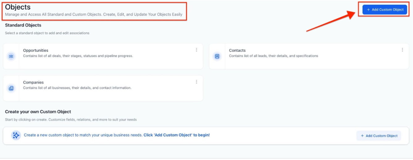 - Add Custom Object: Click on the “Add Custom Object” button.