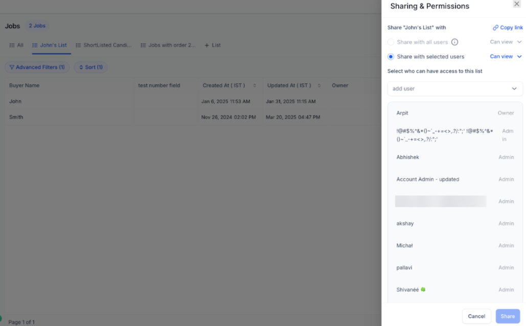 - Share your SmartLists with team members, setting permissions for view-only or editing access.
