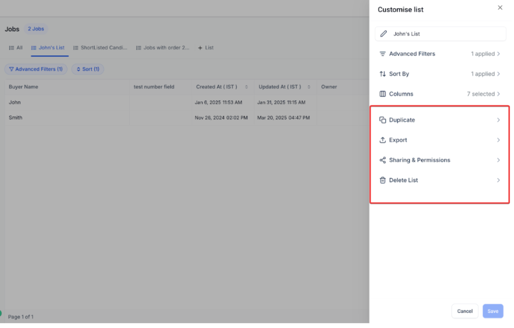 Section titled “SmartLists for Custom Objects”Easily create, manage, and share personalized views with Smart lists. This simplifies the management of Custom Objects by offering flexible, shareable views that ensure everyone sees the most relevant and up-to-date information.