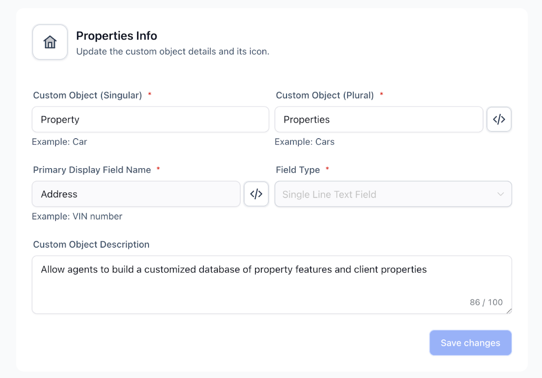 Real Estate businesses can use Custom Objects to track unique property details, associate properties with clients and vendors, manage maintenance schedules, and organize transaction records. These Custom Objects allow agents to build a customized database of property features and client preferences, enabling targeted matching and improved relationship management.