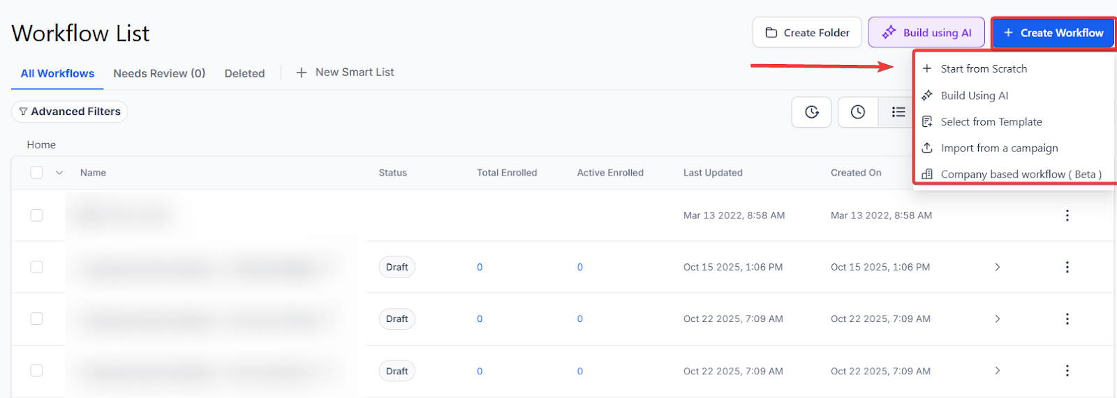 Section titled “How to Set Up Custom Object Workflows”Navigate to the Workflow PageGo to Automation on the left, Workflows at the top, and click on “Create Workflow” to start building your object-specific automation.