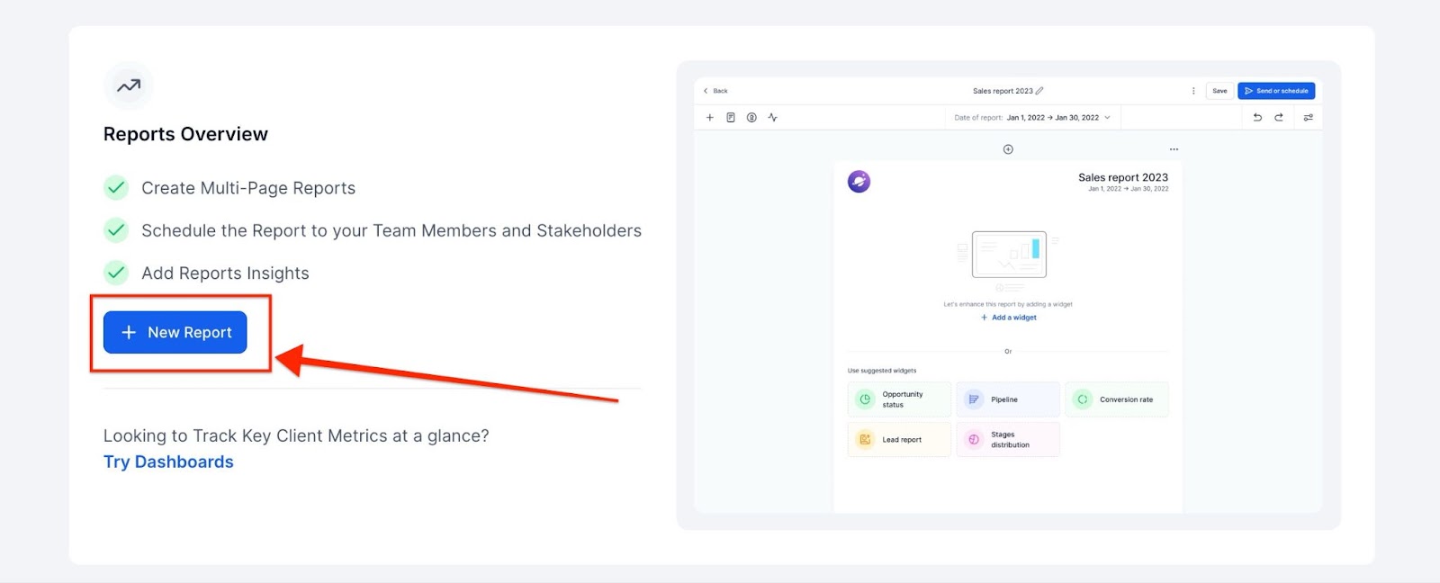- Go to the Reporting section in your dashboard.