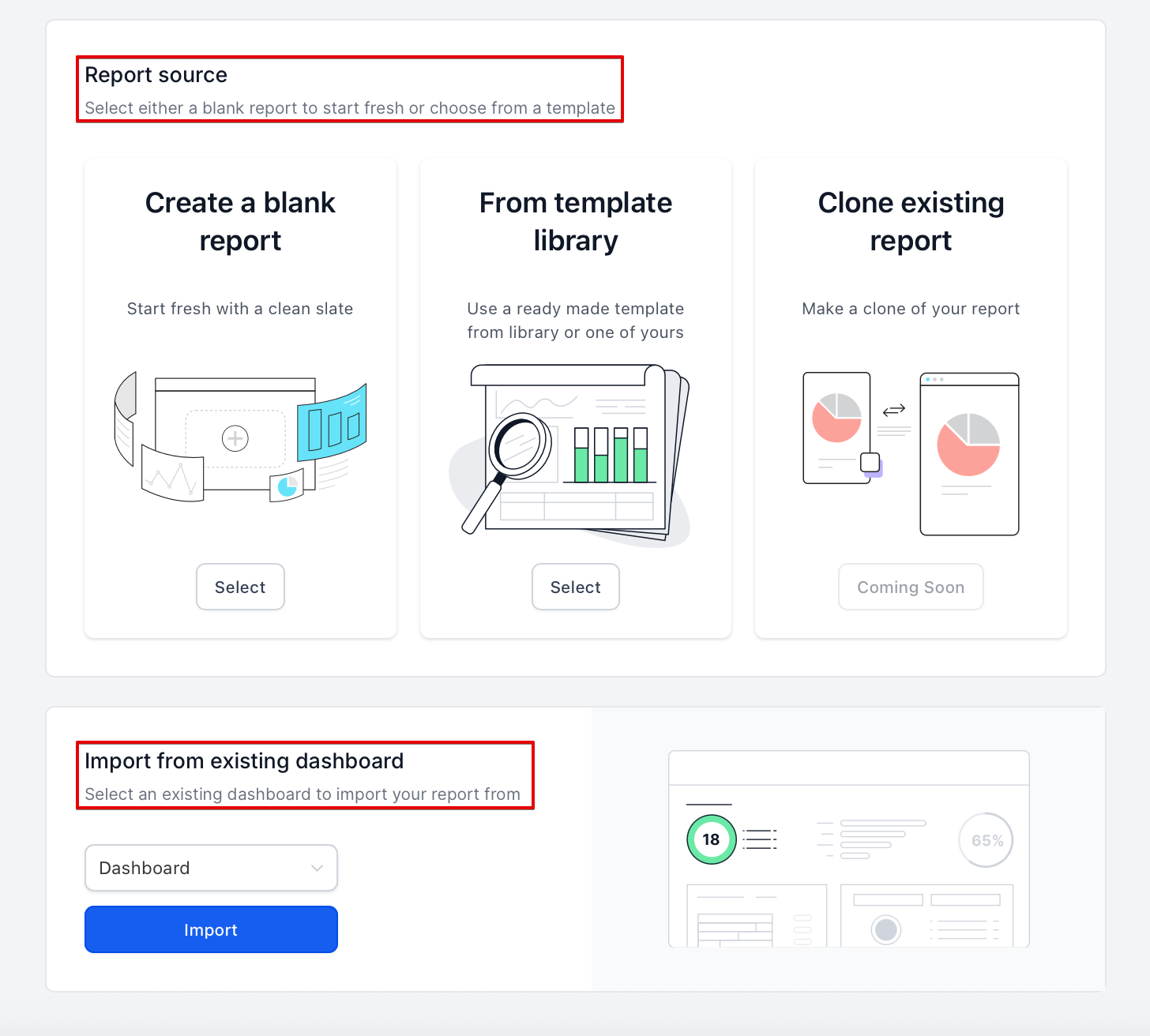 - If you already have a dashboard created, you can import it directly to save time and retain its structure.