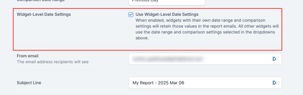 - Enable the “Use Widget-Level Date Settings” option if you want each widget to follow its own date configuration. Otherwise, disable this option, and all widgets will follow the global date range.