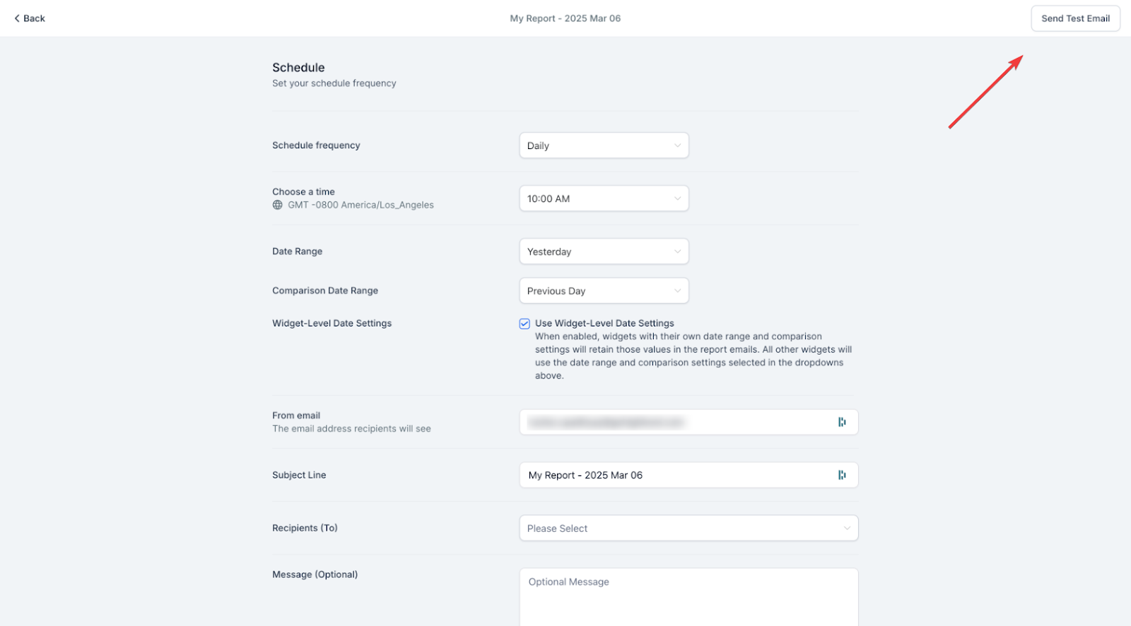 Question: How can I ensure accurate date ranges in my reports? Answer: Simply enable the “Use Widget-Level Date Settings” option to ensure each widget retains its specific date range when the report is scheduled.