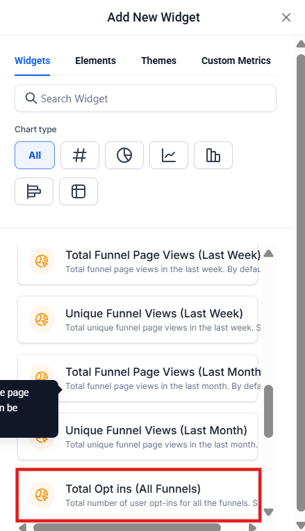 Section titled “Step 3: Add a Top Funnel by Opt-ins”- Add a New Widget: