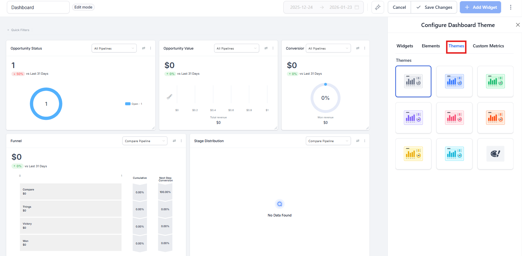 - After finalizing your selection or customizations, click “Save” to apply the theme to your dashboard.