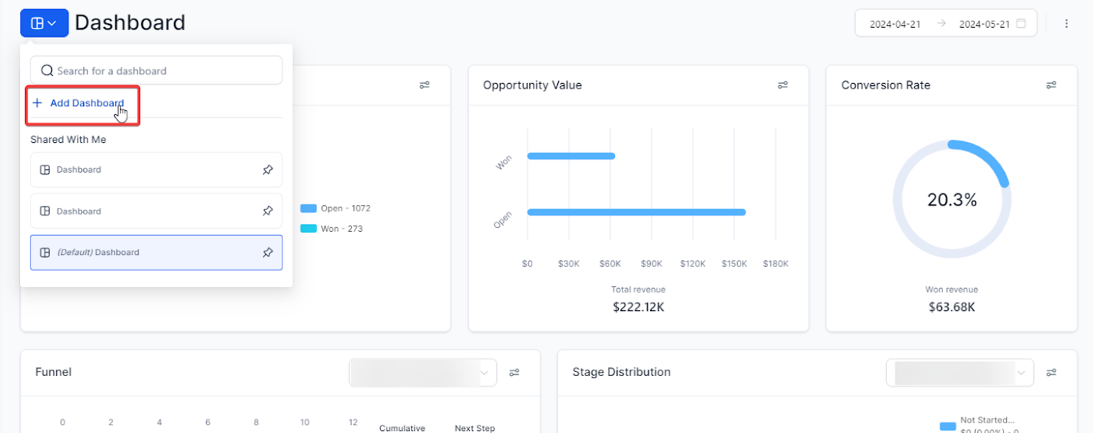 Section titled “Instructions: Setting Up a Call Tracking Dashboard”Creating a New Dashboard