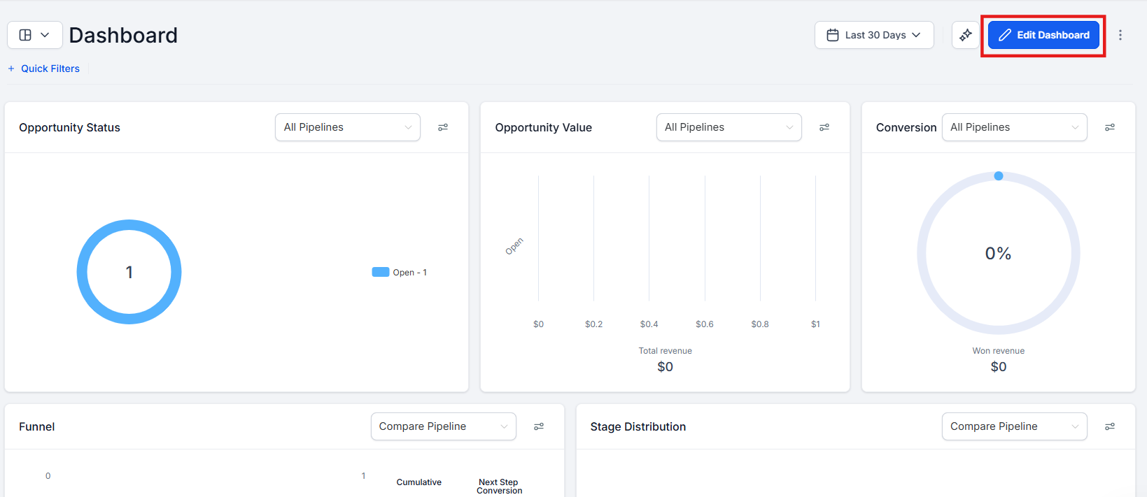 Section titled “Adding and Configuring Call Widgets”- To enter customization mode, click the Pencil Icon or the Edit Dashboard button.